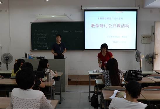 2016年11月17日下午,1929cc威尼斯第一教学部在南校区教学楼B207举行了教学研讨公开课活动,活动主题为形成性评估教学理念在课堂的实施,分“公开课展示”和“评课交流”两大环节,旨在促进教学和学术交流,推动大学英语教学改革,探索新的教学模式与方法,提高教学质量。活动由第一教学部主任郭进军主持。