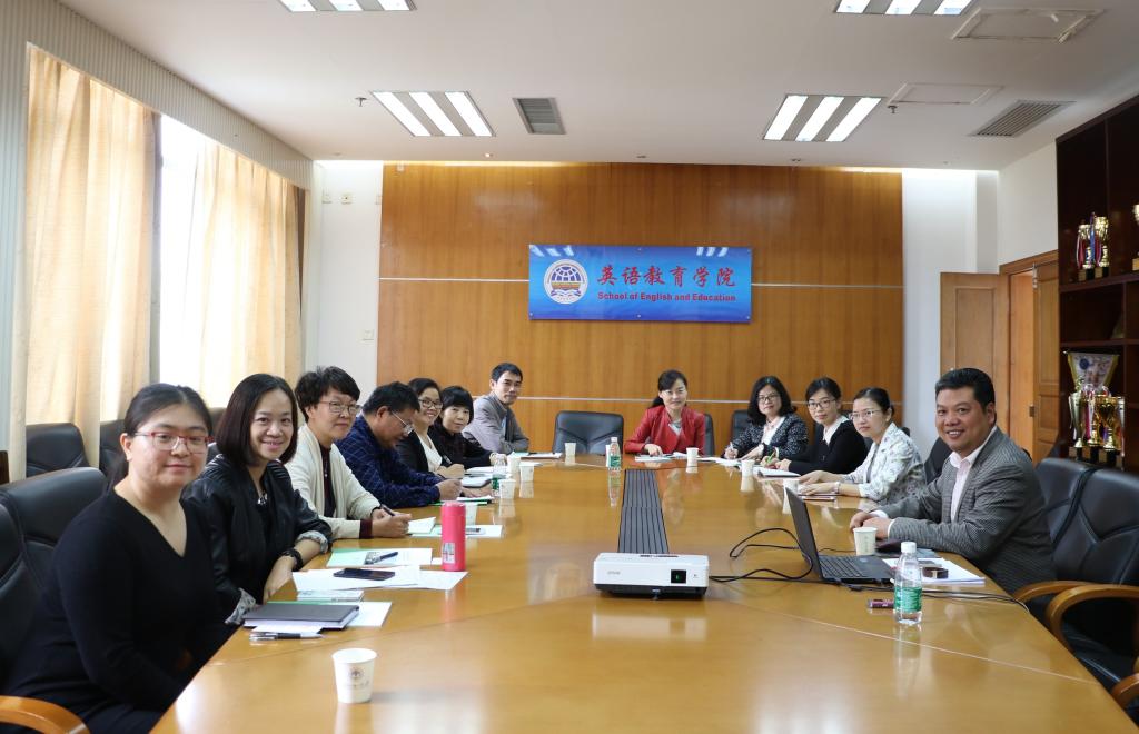 12月13日上午八时,华中农业大学和丽水学院代表团来威尼斯官网进行了友好的教学访问交流。在进课堂观摩了威尼斯官网大学英语EAP、ESP、英语教育的相关课程教学后,两校代表团与威尼斯官网副院长陈金诗、教育系主任谢剑萍进行了亲切会谈。
