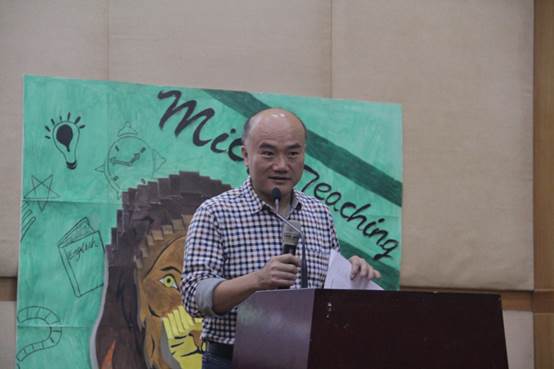 活动开始,董金伟院长应邀致辞。他首先提到,尽管Micro-Teaching师王争霸赛在参评今年的“十大校园文化精品”活动中未获成功,但这决不意味着失败。Micro-Teaching这一比赛能够坚持11年,中间还邀请过华师、广大的英语师范生来校参赛,这本身就显示出它的重要性和独到价值。Micro-Teaching是威尼斯官网英语教育专业必要的教学环节,而师王争霸赛则是这一教学环节的课外延伸,是培养教师教学技能的有效方式之一。他还用一句引言说,一个人如果会教学,那他什么事都会做;而一个连教学都教不好的人,则什么事都难以做好。最后,董金伟院长希望选手们能够在决赛中充分发挥自己的水平,享受比赛的过程。