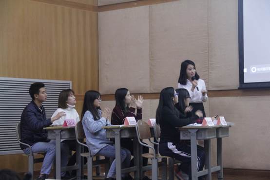 首先登场的是来自1402班的陈华艳。她为学生们准备了一首阿黛尔的歌曲,并用其中的歌词来引入今天的课题。她热情洋溢的授课调动了学生们积极的思考与回应。来自1404班的潘曼菁则采取让学生分组讨论的方式,并进行随堂检测,她还别出心裁地运用了图片来激发学生的想象力,极大地调动了学生的学习兴趣。来自1402班的何柳珊和来自1404班的戴智健,他们运用了英文歌曲来讲授定语从句,使学生们在轻松的音乐环境中学习英语。他们还为学生准备了阿黛尔的故事,教给学生们很多人生道理。他们用行动证明教师不仅要教授知识,而且要传授做人的道理。而四号选手袁燕珊,则以电影《你的名字》引出了她的课题,她给予每一个学生回答问题的机会,使得每个学生都能参与到教学中,提高了学生的学习效率。