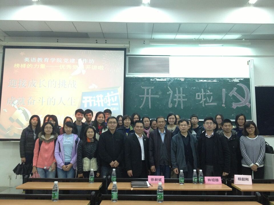 “榜样的力量——优秀党员开讲啦”自2014年启动,邀请优秀党员来给学生党员开讲,其中既有“引领青年,退而不休”的校关工委主任冯益谦教授、醉心学术研究数十载的杨韶刚教授,也有从教40周年的王桂珍教授和入党30年的老党员林绍雄。活动通过经验分享和言传身教,突出优秀党员的先锋模范作用,以榜样的力量感染学生向老一辈优秀党员学习,不断加强自身党性修养,提升自身素质。