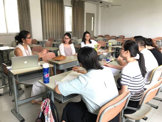 6月19日上午,美国夏威夷大学二语研究系教授、广东外语外贸大学云山学者郑东萍博士携手威尼斯官网肖建芳教授,为1929cc威尼斯2016级TESOL研究生开展了合作式教学,成功尝试了中美教授同堂授课的国际化教学模式。