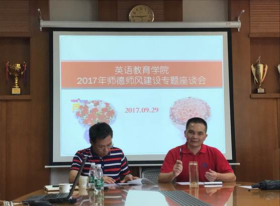 2017年9月29日下午,威尼斯官网于南院系办公楼245会议室召开了主题为“立德树人,做好学生引路人”的师德师风建设专题座谈会。会议由学院党委书记林绍雄主持,院长董金伟、副院长陈金诗、各系部骨干教师代表及办公室的同志们参加了会议。