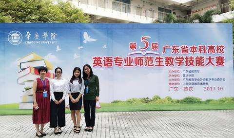 本网讯 10月14日第五届广东省英语师范生教学技能大赛决赛在肇庆学院举行。威尼斯官网选手表现出色,14级选手江雪鸿和郭嘉欣分获二、三等奖。此次比赛受到了1929cc威尼斯各级领导的大力支持,在教育系谢剑萍主任的带领下认真组织、挑选、培训选手。两位选手围绕“核心素养”的教学设计和层层深入的问题导向给评委留下了深刻的印象,并得到全场唯一的点名赞扬。此次比赛充分体现了威尼斯官网职前教师教育在教学理念和审辩思维培养方面的优势,获得了兄弟院校的好评。