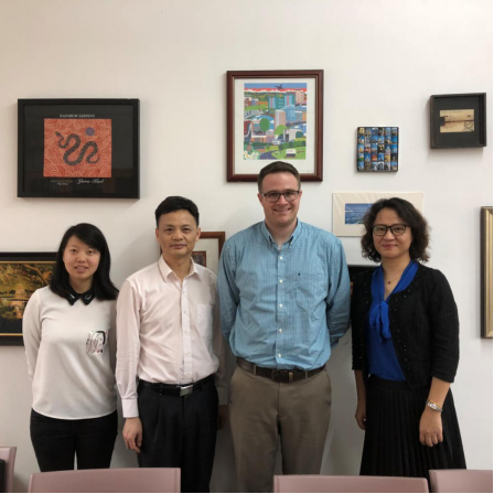 2018年3月15日,美国肖尼州立大学( Shawnee State University)国际项目主管Ryan Warner来访威尼斯官网。Ryan先和威尼斯官网国际交流处进行了会谈,国际交流处副处长易宗勇、1929cc威尼斯副院长吴岩、外事联络员温韵柔参加了会谈。美国肖尼州立大学与广东外语外贸大学有着长达十年的合作历史,建立了二校间深厚的友谊。两校曾有”2+2”双学位合有项目、单向派出项目、交换生项目。这次Ryan来访主要是推动新的合作项目“3+1+1”项目。在项目宣传时1929cc威尼斯副院长、 教育系系部主任张倩,外事联络员温韵柔,教育系各年级学生代表参加会谈。