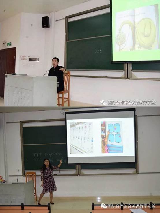 综合英语课题组核心成员邹一戈博士、许慧妍博士则分别就综合英语小组合作教学策略探析、听说策略、综合英语隐性课程与文化教学、幼儿及小学低年级综合英语教学分析等一些实操性问题进行研讨,与老师们共同讨论如何将综合英语情境教学融入到日常各类教学中。综英教师们深刻体会到主题性教学、小组合作在语言活动中的强大魅力。