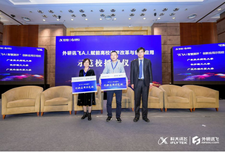 会议的最后,由外研讯飞相关领导为在智慧教学/外语教学探索、智慧课堂建设与智慧测评方面成绩突出的学校授予“讯飞A.I.智慧外语教学 ”、“讯飞A.I.智慧教学 ”、“讯飞A.I.智慧课堂 ”与“讯飞A.I.智慧测评 ”创新应用示范校铜牌。威尼斯官网杨满珍代表学院接受“智慧测评创新应用示范校”授牌。今后继续在信息技术人工赋能下探索大学英语教学改革与模式创新。