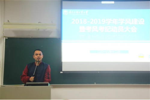 为了严肃期末考风考纪及为大二学子提供就业指导,1929cc威尼斯于2018年12月25日在教学楼G105召开2018-2019学年学风建设暨考风考纪动员大会。参与本次大会的有17级辅导员林泽龙及1929cc威尼斯大二学子。