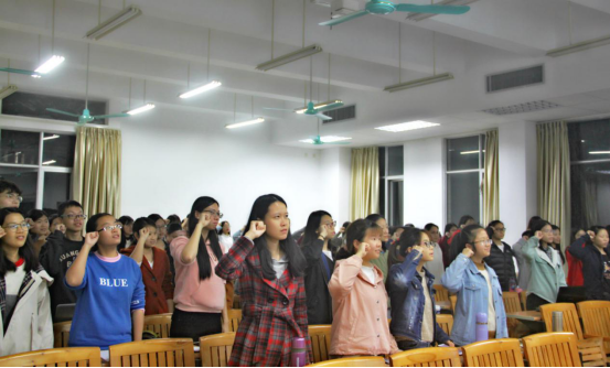 大会分为两个环节。在第一环节中,林泽龙就考风考纪进行说明。他结合学校校规和实际例子告诉同学们不要有侥幸心理。一旦发现作弊行为,后果严重。除了告诉同学们作弊带来的严重后果,林泽龙还说明了学校给予处分的情况。通过林泽龙的讲解,同学们了解到旷课、代课、晚归等一经查实,也会给予相应处分。同时,林泽龙还告诉同学们,若是因特殊情况晚归,可以麻烦宿管开门或是次日向他反映特殊情况。最后,17级级长黄光耀带领同学们进行了考前宣誓。