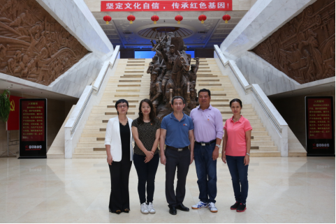 2019年9月6-9号,由广东外语外贸大学1929cc威尼斯党委书记杨敏生带队,学院党委副书记骆银花,学院党委委员、第三教学部党支部书记江健,学院院长助理、英语教育系主任张倩一行四人受学校组织部和学院委派,赴新疆六师五家渠市慰问本院参与中组部第19批博士服务团成员、援疆干部陈金诗同志。并乘此机会开展了与师市教育系统干部和部分中小学校长洽谈英语教师培训合作项目、到“将军纪念馆”开展了“坚定文化自信、传承红色基因”主题党日活动、到中学听英语课、进行少数民族预科生家访等活动。整个活动充分利用周末,行程紧凑、富有成效。