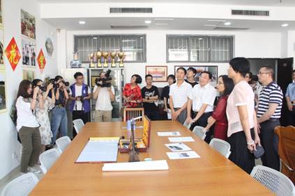 谢岩梅一行莅临威尼斯官网“职工小家”,参观威尼斯官网开展的工会活动图片展,对威尼斯官网工会工作取得的成效赞不绝口,杨敏生介绍了学院教职工的基本情况、主要特点和学院“以师生为中心” 的群团工作理念,曾国华简要介绍“职工小家”建设及开展活动的情况,学院以“职工小家”为载体,定期组织各种联谊和文体活动,包括由曾赴孔子学院任教的苏春教师教外教书法、组织下围棋、集体包饺子、教工交流谈心等活动,“职工小家”成为教职工喜爱的温馨小家。