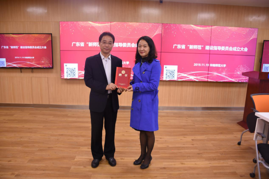 华南师范大学陈文海副校长给与会的副主任委员和委员逐一颁发了聘书,并从国家战略层面、广东实践层面、技术实施层面,对广东为什么要建设新师范、建设什么样的新师范、如何推进新师范建设等提出了富有指导性的见解,希望各位委员能从不同的视角,凝聚共识,为建设广东新师范贡献智慧和力量。