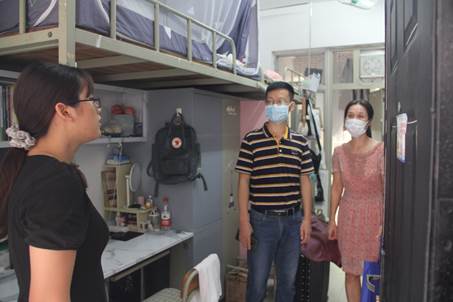 下午五时许,院党委副书记骆银花与院长助理赵林森来到学生宿舍,向返校学生进行亲切慰问,了解学生返校后的宿舍情况,并叮嘱学生严格执行晨晚检制度,及时报告信息。