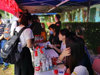 从早上8:00到晚上20:00,学生志愿者等候在学院接待点,亲切问候每一位返校同学,并引导他们出示健康码、测量体温以及完成签到。除此之外,学生志愿者们还为每位返校同学献上学院特别准备的爱心返校礼品,包括口罩、免洗洗手液等防疫物品。一份份礼品传递了学校和学院对同学们的深切思念,也让同学们感受了“回家”的温暖。