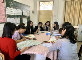 研讨活动分为两个环节。首先是实习生尹凯盈、张琳以及西外高一年级英语学科吴亚琼老师现场上课。之后,在西外高中英语学科负责人刘贞老师的主持下,吕琳琼老师、实习生以及西外高中部英语教师就这三节课进行了深入探讨、交流。