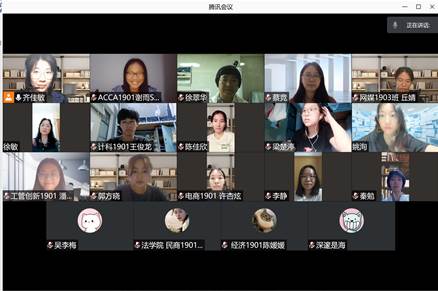 南校区分会场由文学文化组组长齐佳敏主持,综英组组长徐敏和翻译组教师代表秦勉老师协助主持,来自南校区11个学院的20余名学生代表参与了座谈。学生代表们认为,大学英语类课程教学内容丰富有趣,课程设置科学合理,线上线下课程结合有道,课程设计兼具实用性和趣味性,任课教师不仅水平高还对学生特别认真负责。同时,他们也提出了一些建议,如文化课和口译课的部分线上课程学习难度和强度较高,建议教师在线下教学中增加有针对性的辅导和练习反馈;建议文学课程增加小说和戏剧等文体内容的学习,并希望教师提供更丰富的扩展延伸阅读指引;建议翻译类课程增加线上共享资源库,并适当加大练习难度。其中,来自外交学班级的学生代表指出,虽然外教的线上教学极为认真负责,课程安排科学合理,但由于网络空间的限制,同学们希望能够增进与外教的沟通和交流。
