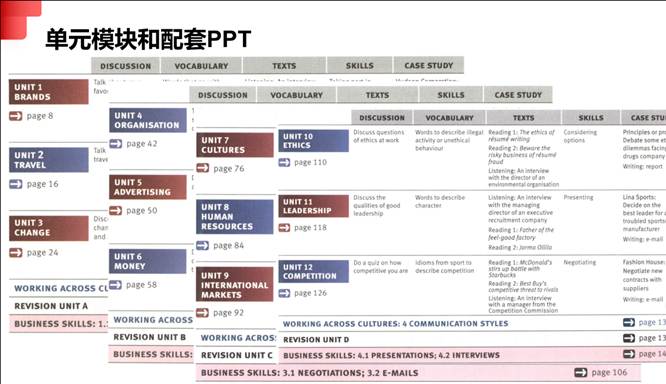 朱老师重点介绍了本学年中级组专门用途英语教学统一讲授的四个核心单元:Organization, Brands, Money, International Markets,帮助新教师更好地把握教学重点。此外,她还展示了配套PPT课件、学生课堂笔记范例以及小组作业案例,进一步帮助新教师理解教学内容的组织方式与课堂活动的设计思路。