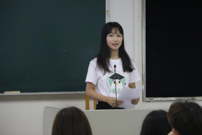 何紫婷代表全体团学骨干欢迎所有工作人员的加入,详细介绍了英教团学的五大工作理念:第一,秉持严谨的工作态度,做事注重细节;第二,善于平衡学习与工作,提高办事效率;第三,树立服务意识,做到从同学中来到同学中去;第四,树立创新精神,锐意进取做出更好成绩;第五,学会思考并勤于思考,不断改进自己的工作。