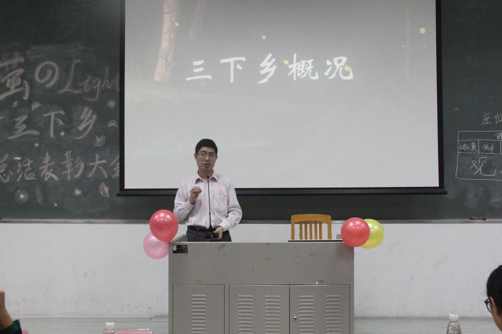 2015年11月4日晚7点,英教学院2015年暑期三下乡活动总结表彰大会于教学楼G207举行。党委副书记徐昶斌,团委书记林泽龙,团委副书记钟婉莹,副主席叶芷君,团副助理陈嘉泳及经贸学院实践部部长谢楚瑜作为嘉宾出席本次大会。此次大会由实践部庄莉莎,黄思敏主持,旨在对2015年暑期三下乡社会实践活动进行总结,并对优秀队伍,优秀队员进行表彰。